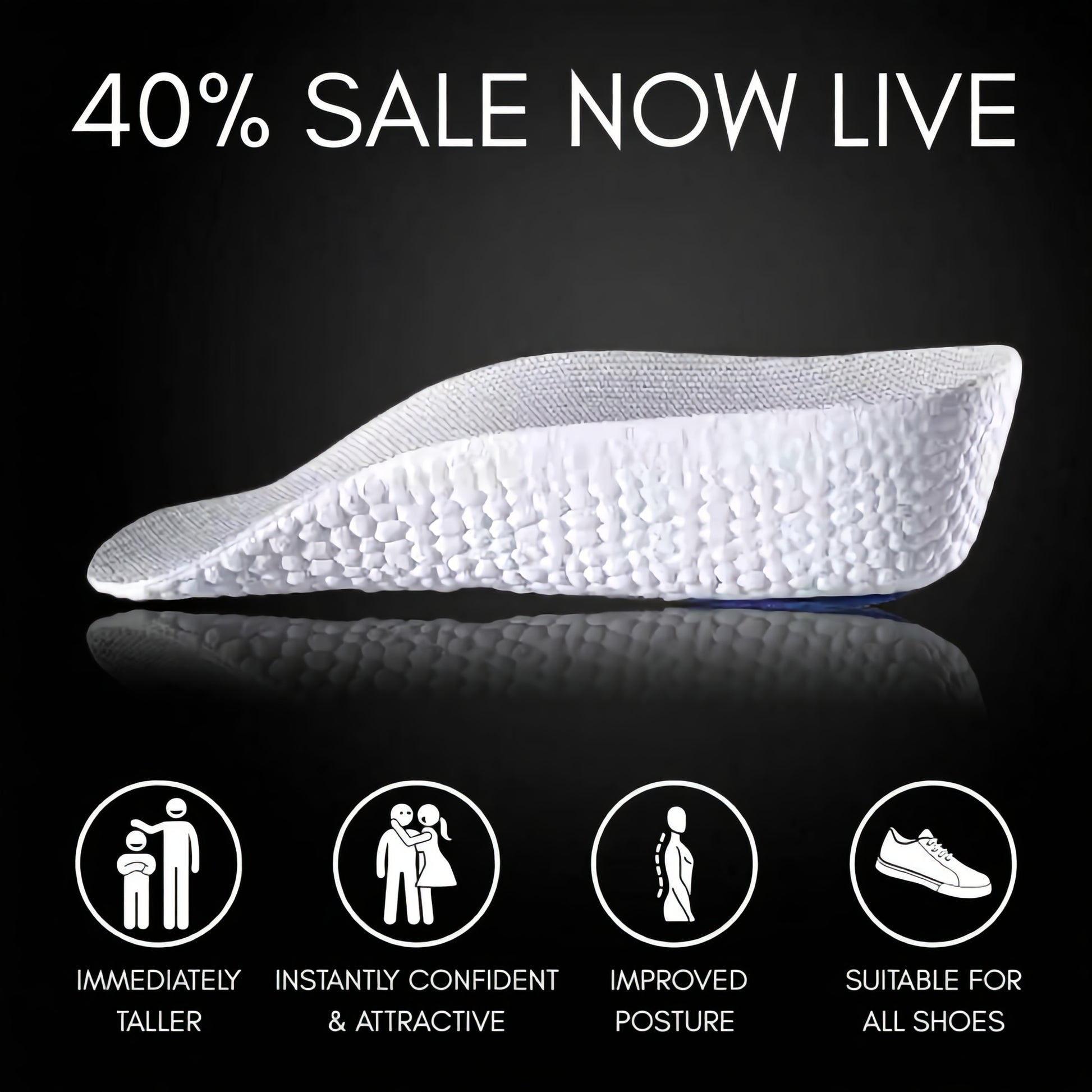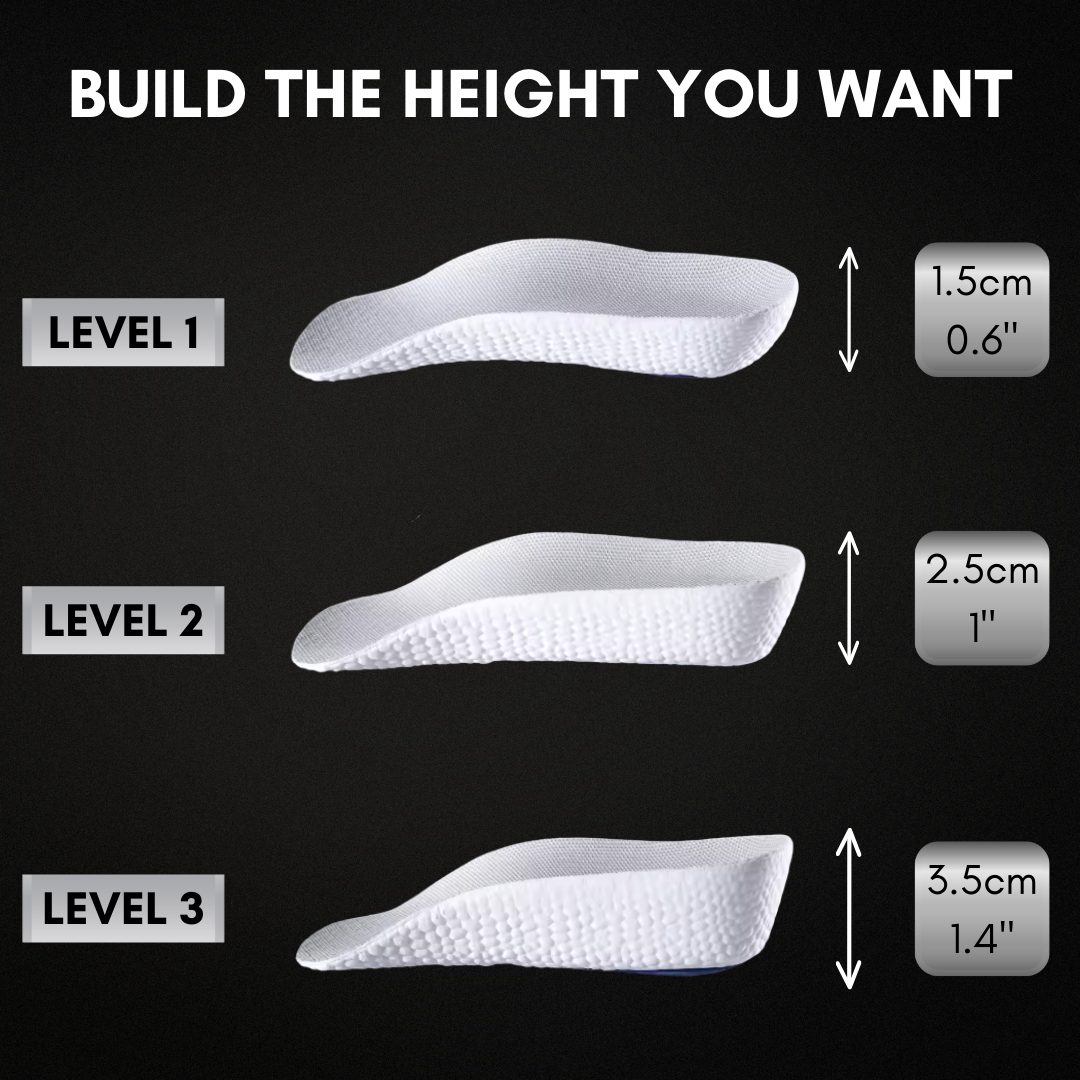 Our height increase insoles give you that extra edge instantly. Better posture, stronger presence and a boost in self-belief that shows the moment you walk into a room.
